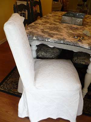 There were four of them of them but I only took two because I only have two Parson’s Chairs. But I tried one on my wooden dining room chairs and it fits perfectly. I could kick myself for not getting all four now! I could have used them on my regular chairs and kept the black check slips on the Parson’s Chairs…oh well!