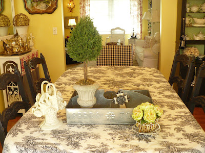 Love the slipcovers! The topiary! Your toile blue room is lovely!!!