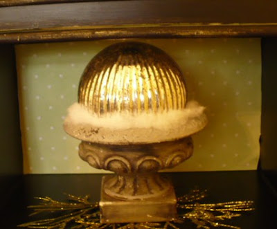 A big faux mercury glass ornament in a great little urn I found at Goodwill!