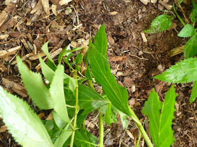All the hydrangeas along this fence have been propagated by me with the exception of the first one. As you can see, they get smaller as you get to the end because those are the newer ones. All you need is patience and the will to suppress the desire to impress your neighbors with an “instant” garden. (The plant to the right of the last hydrangea are some blackberries creeping under the fence)