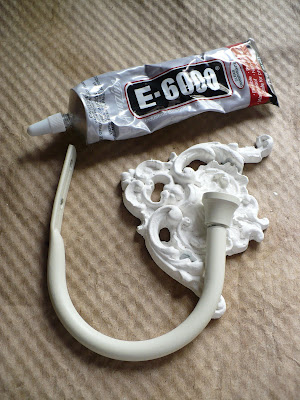 I needed a tie back so I made one! I used an old tie back (it used to belong to my daughter and had a glow in the dark star on the end). I also used a decorative furniture applique that I pried off a piece of furniture before donating it to Goodwill and some E600o glue. How’s that for repurposing!