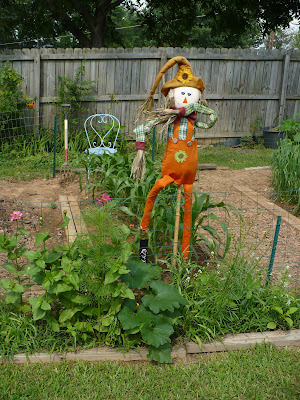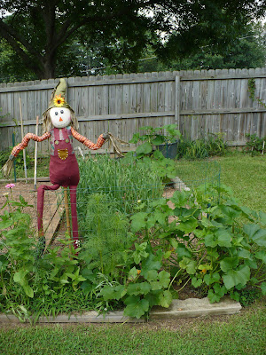 Your garden looks great! Everything looks so good and healthy. Cute scarecrows.:) Know what you mean about the heat. I went out after dark last night to help my elderly neighbor water her flowers and I was dripping wet when came in.
