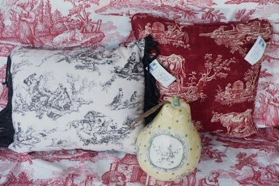 Wow!! What great finds. Have I mentioned, I LOVE toile! Love the plates and pillows.