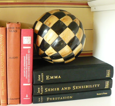 Let’s see…themes around my house. Toile, harliquin, checks and roosters. In reds, blacks and yellows…A touch of green thrown in for good measure. I think we really are sisters Manuela! We have so many of the same things! BTW, I love your harliquin sphere!