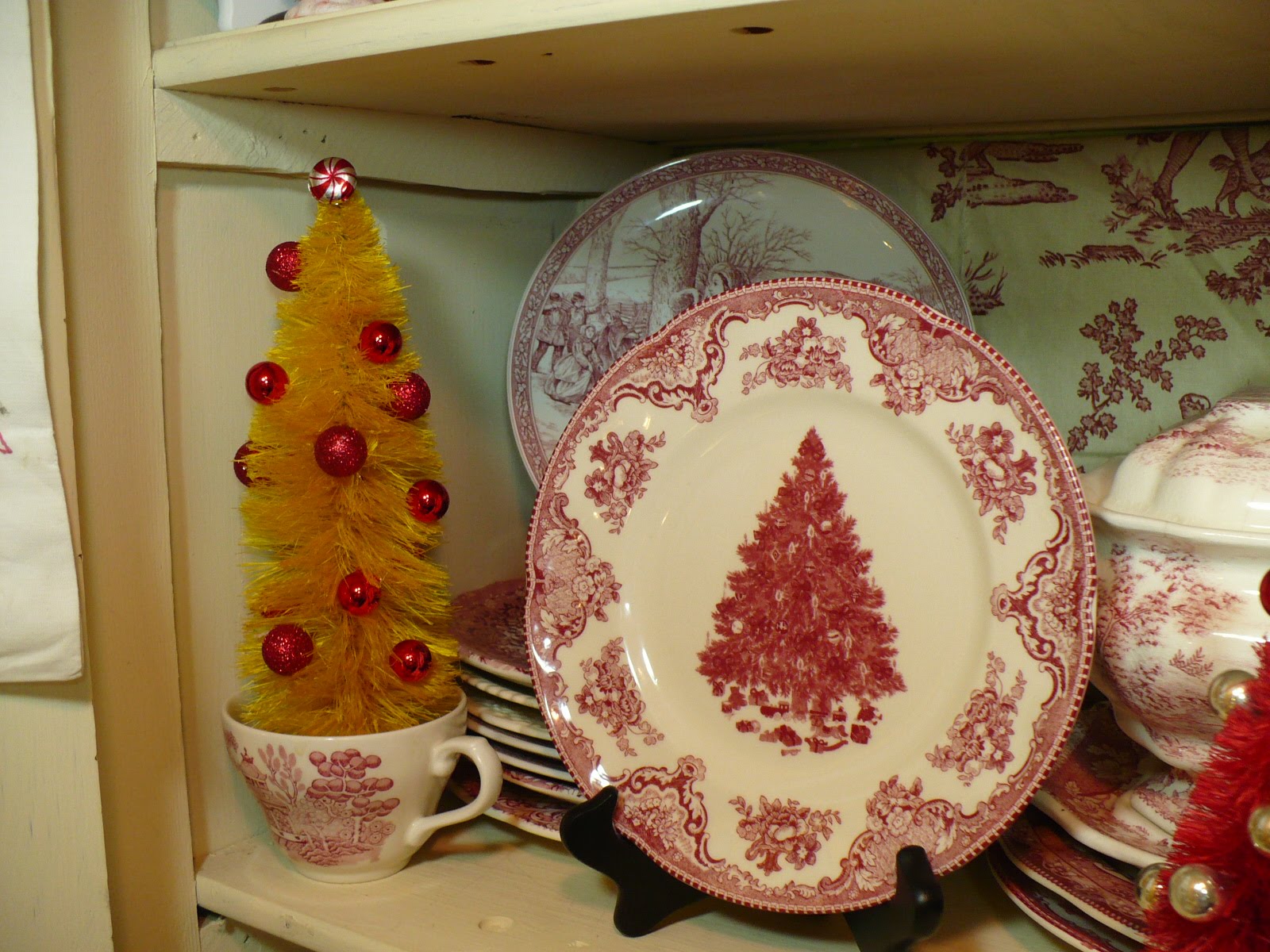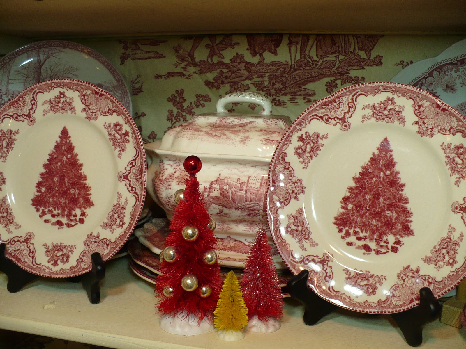 I love your dishes and that reminded me that I do have Christmas dishes and that I should get them out and put them in my cabinet! Oh and the trees look great with your dishes.