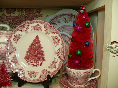 Love your Christmas in your cabinet. I'm going to try bleaching some bottlebrush trees, but I was going to leave mine white and glitter them. BUT, until this post, I didn't think I needed some red ones. I, also, have the Johnson Bros. Christmas tree dishes, so after seeing yours with the red BB trees, I just think I may have to do a couple of red trees!! Thanks for the inspiration. Sally