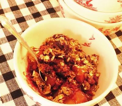 I made a plum blackberry crisp for afternoon coffee. Yummy! I had half a bag of frozen blackberries from our bushes left and added that to 6 plums. I made the topping using juice and olive oil this time instead of butter (gotta watch my cholesterol apparently it’s creeping up every year). It turned out really good! I don’t have a recipe – I just threw things together and hoped for the best!