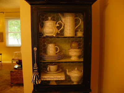 Your cupboard is adorable with the chicken wire added to it. What a fabulous idea! Great work!
