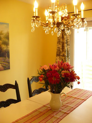 Your dining room is so gorgeous! Thank you for sharing your makeover. I love plates and linens too. $3 is a great price for the pretty runner. The flowers are lovely.