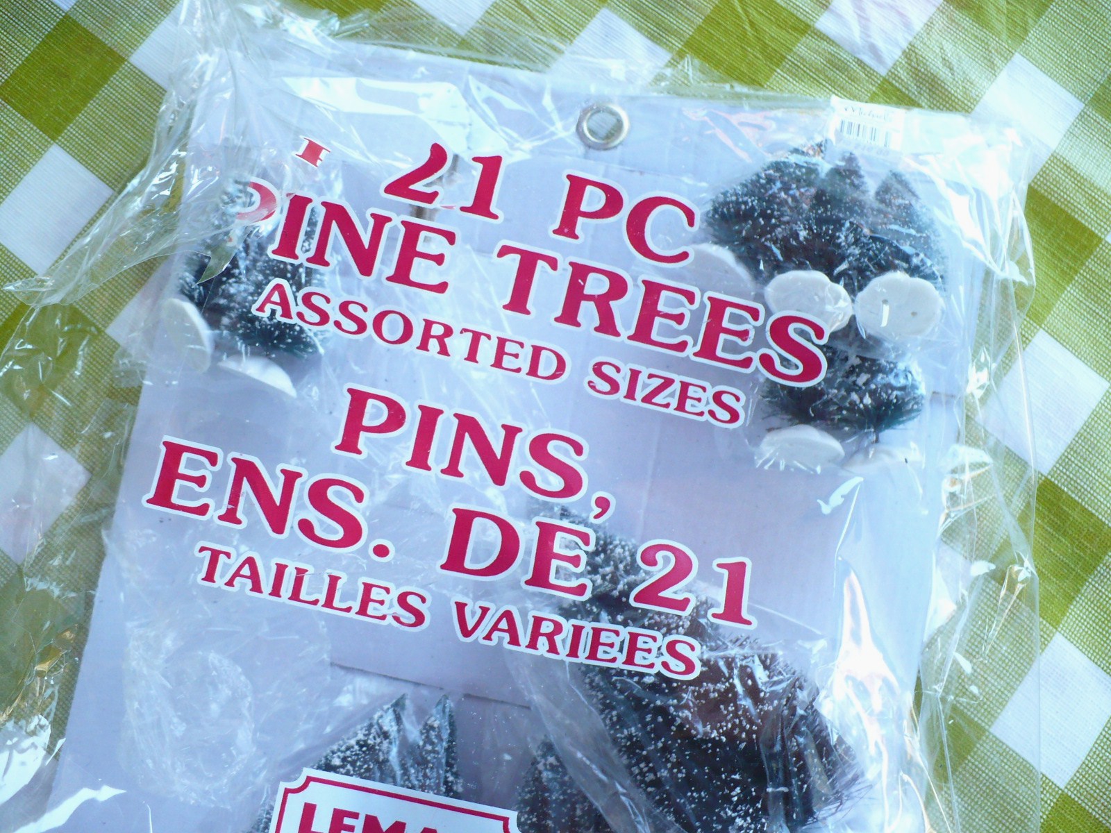This bag has 21 trees in it in several sizes and most craft stores have them on sale now or you can use your 40% off coupon. Be sure you get this one. I only wanted a few trees last year and I got a smaller bag – they looked the same-after using a gallon of bleach I realized they were plastic not bottle brush! They never bleached!
