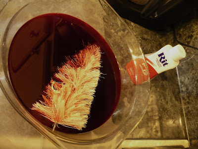 Here’s one in some red Rit dye. I used the liquid dye. I just poured some in the glass bowl and added some hot water. It absorbed the dye really quickly!