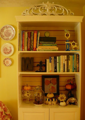 Your bookcase looks great. I love all of the seasonal touches you have added. Those are the touches that always make a home seem so cozy to me.