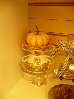 I clicked on the pictures to enlarge them – I had to check out the transferware. Is that a Meakin plate with the white pumpkin? Also, you already know I love those turkey bowls. The bookcase looks great! Sally