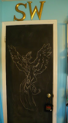 The wall by my back entry is all chalkboard paint. I love that I can leave messages or just draw something fun. I never get tired of it!
