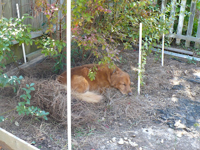 I just love that big Golden Boy taking a nap in the pine straw! My sweet Gertie loves to be outside with me too:-)