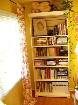 I absolutely love your curtains and you did a great job on your bookshelves.