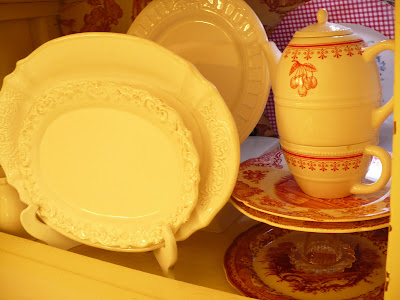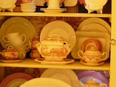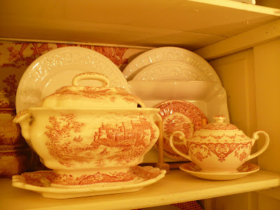 The second shelf. My pride and joy of my red transferware collection my soup tureen.