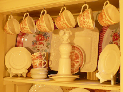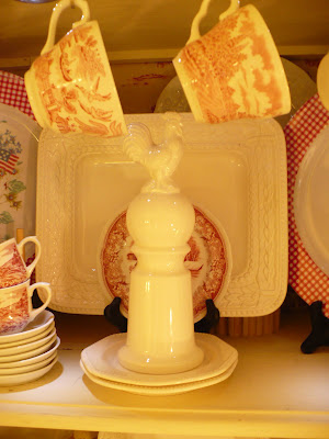 Love the changes to your cabinet. I loved everything. I want one of those rooster finials. And your flower plates with the flags are yummy. I want some of them as well. I guess I'll just have to keep coming back to your blog to sneak a peek every once in awhile.