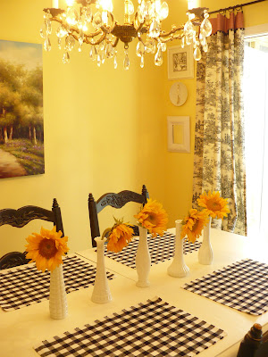 I LOVE the sunflowers! What an adorable and cozy place for your family to eat. 🙂