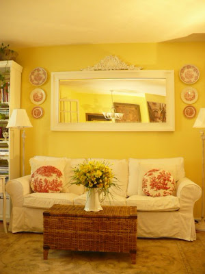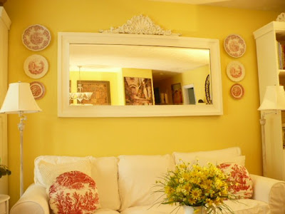 I’ve been looking for some nice white platters to hang between the mirror and sofa. I think that will look pretty! I love my toile pillows but I think it’s time for a change so I’m thinking about reworking a pair I already have. I also want to do something fun with my lampshades!