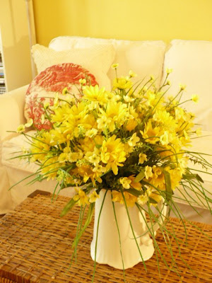 Cheerful, crisp, clean, but cozy – somehow that is how I envision you! I like the bits of red on the couch pillows but maybe you could swap out for some fun blue bird printed fabric – that seems to be all the rage these days – I think the lamp shades would look fun if you found a funky “pop” shade – like black and white toile or zebra print – just eye candy… but that’s me… love how you just casually worked a “make-over” into your day…