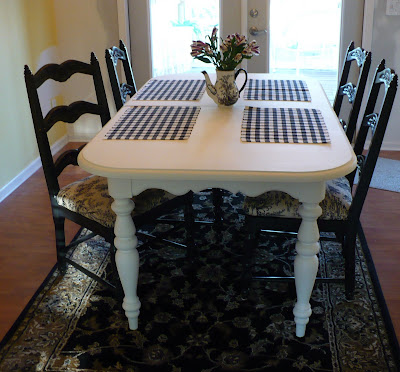 Your table is beautiful so clean and bright. The black chairs look wonderful with it. Love the toile cushion on the chair. Great makeovers! Madeline