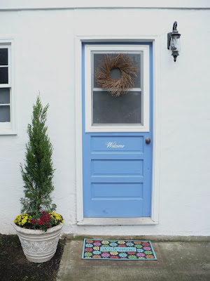 Love that "Welcome" painted right onto the door. My husband recently painted our back porch, I need to get back there and see what I can do to make it more inviting!
