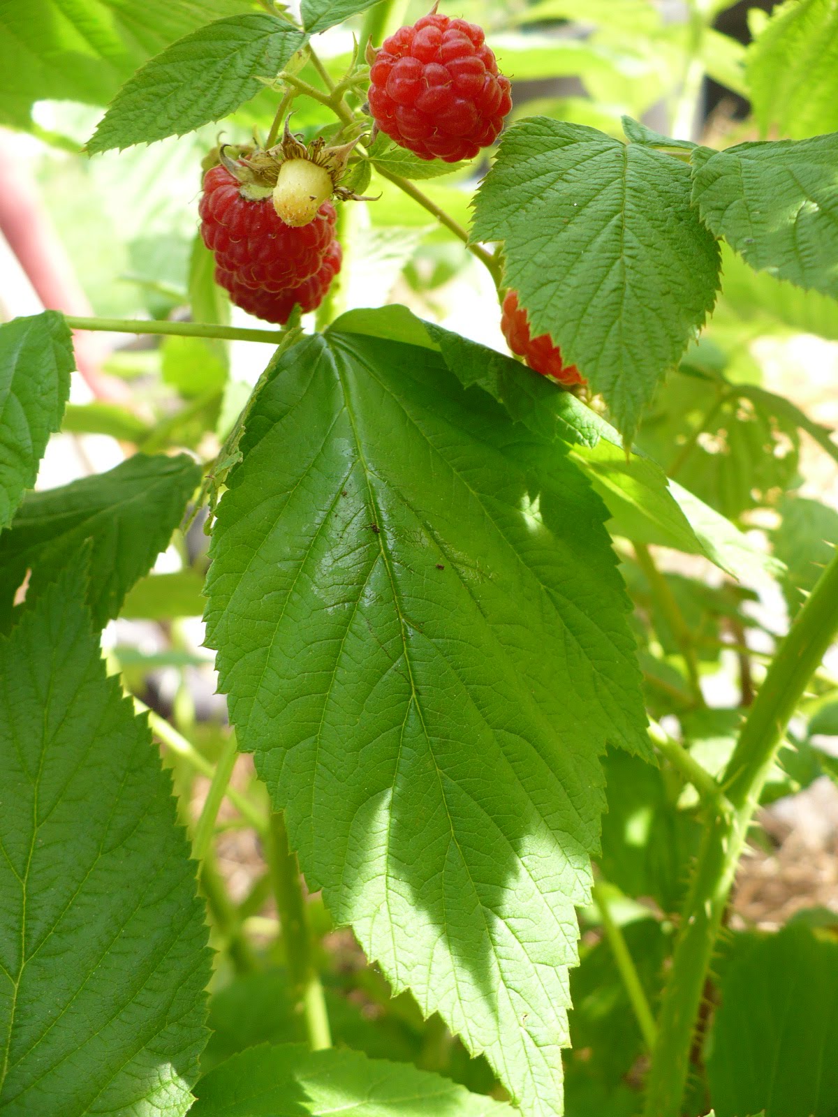 Look at those raspberries! I just have my veggies and herbs planted – no fruit. In fact today I went to a local organic farmers market to buy some raspberries! I might have to plant some now…:-)
