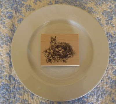 What a cute project! I love that plate and the framed Nest sign! Now I have an excuse to go buy some stamps! Thanks for sharing!