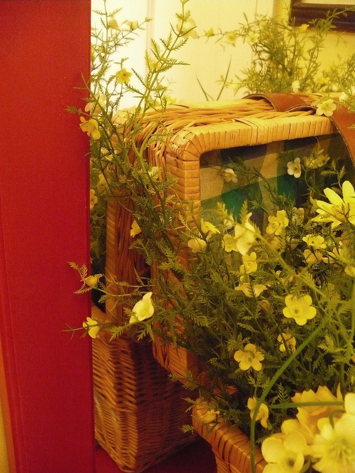 Like the basket as flower display-love to see items re-purposed – unique and beautiful…