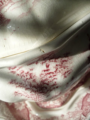 Well, dear one, I am just about to have a runaway over that beautiful tureen. It is just fabulous and I am having a hissy fit to start collecting red transferware…I have the blue and white, daughter has the Johnson Bros. brown and white but we have no RED….