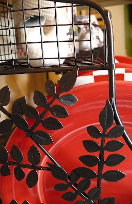 I love the red plates. They are so cheery and bright, and with the way this winter has been, that is a good thing! The S&P shakers are too cute. They do look like anitiques.