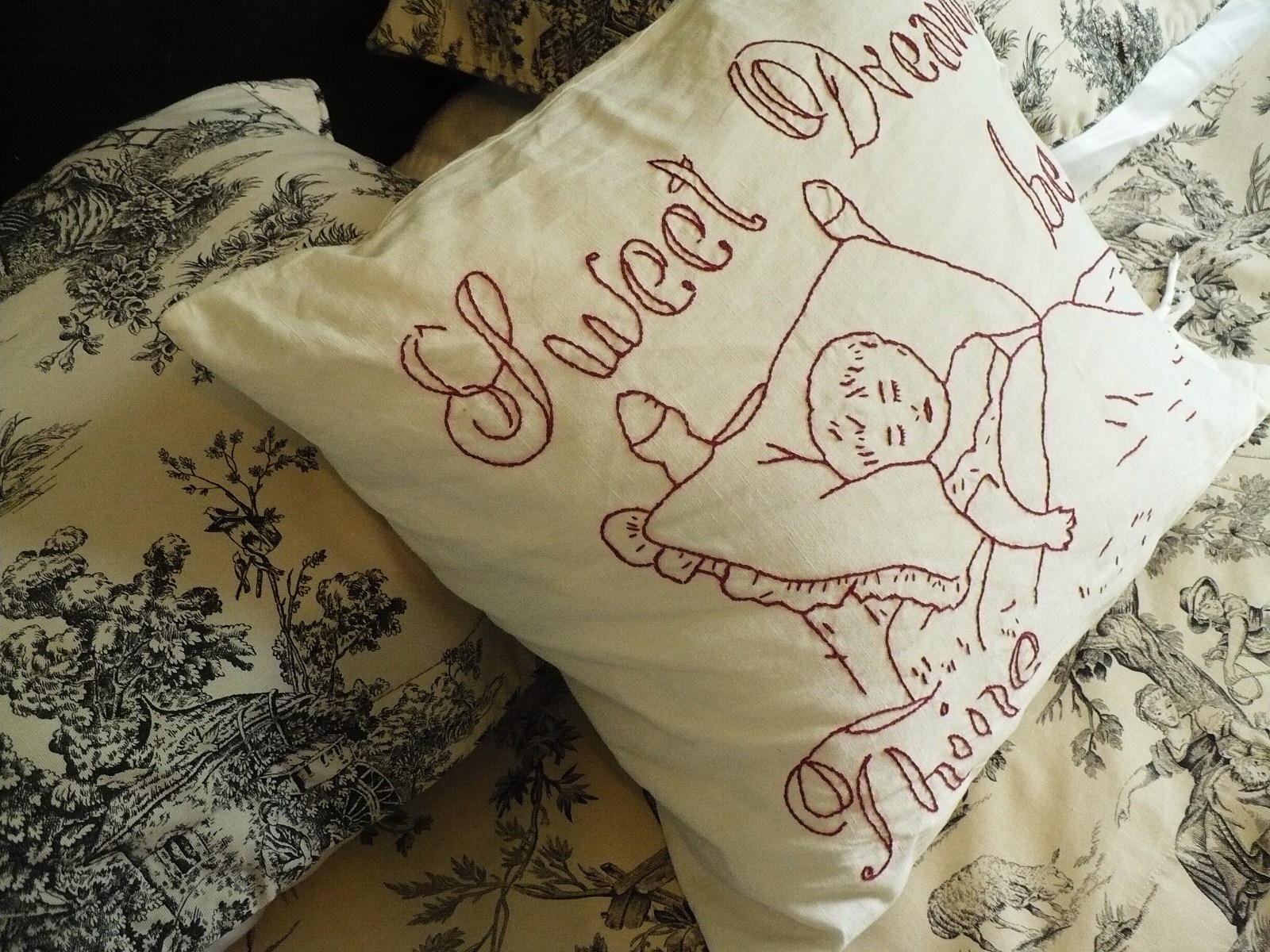 The nightstand looks beautiful…I love lots of books, too! And the pillow is adorable! I want to start doing embroidery but I don't know where to start! ♥