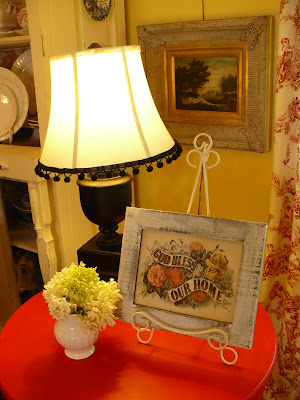 this is my first time visiting your blog and I love your style. I had to laugh when I saw the white mirror with three red toile plates down each side. I have a similar set up over my mantle.