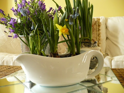 hyacinths smell sooooo good! cute idea with the gravy boat.