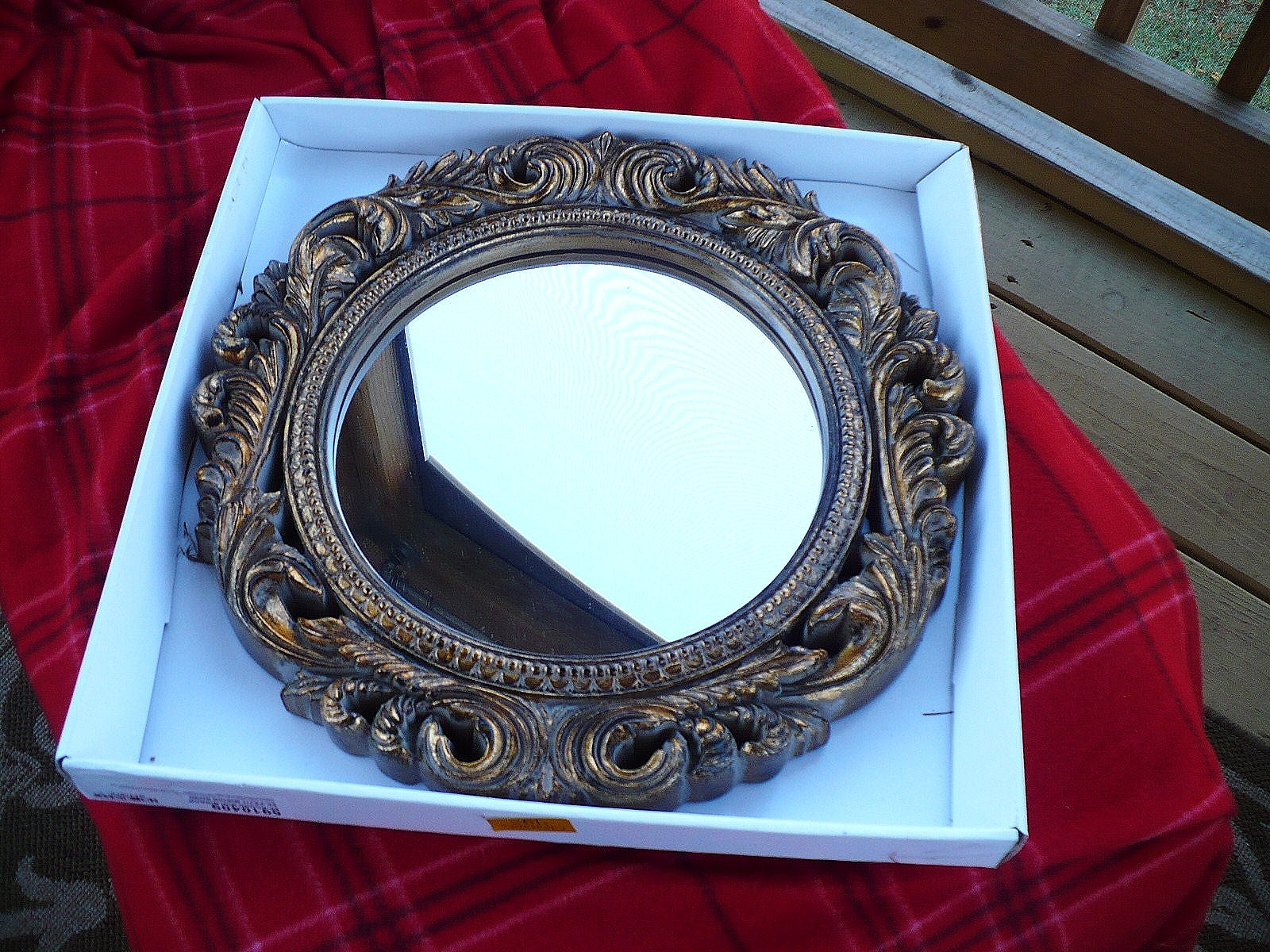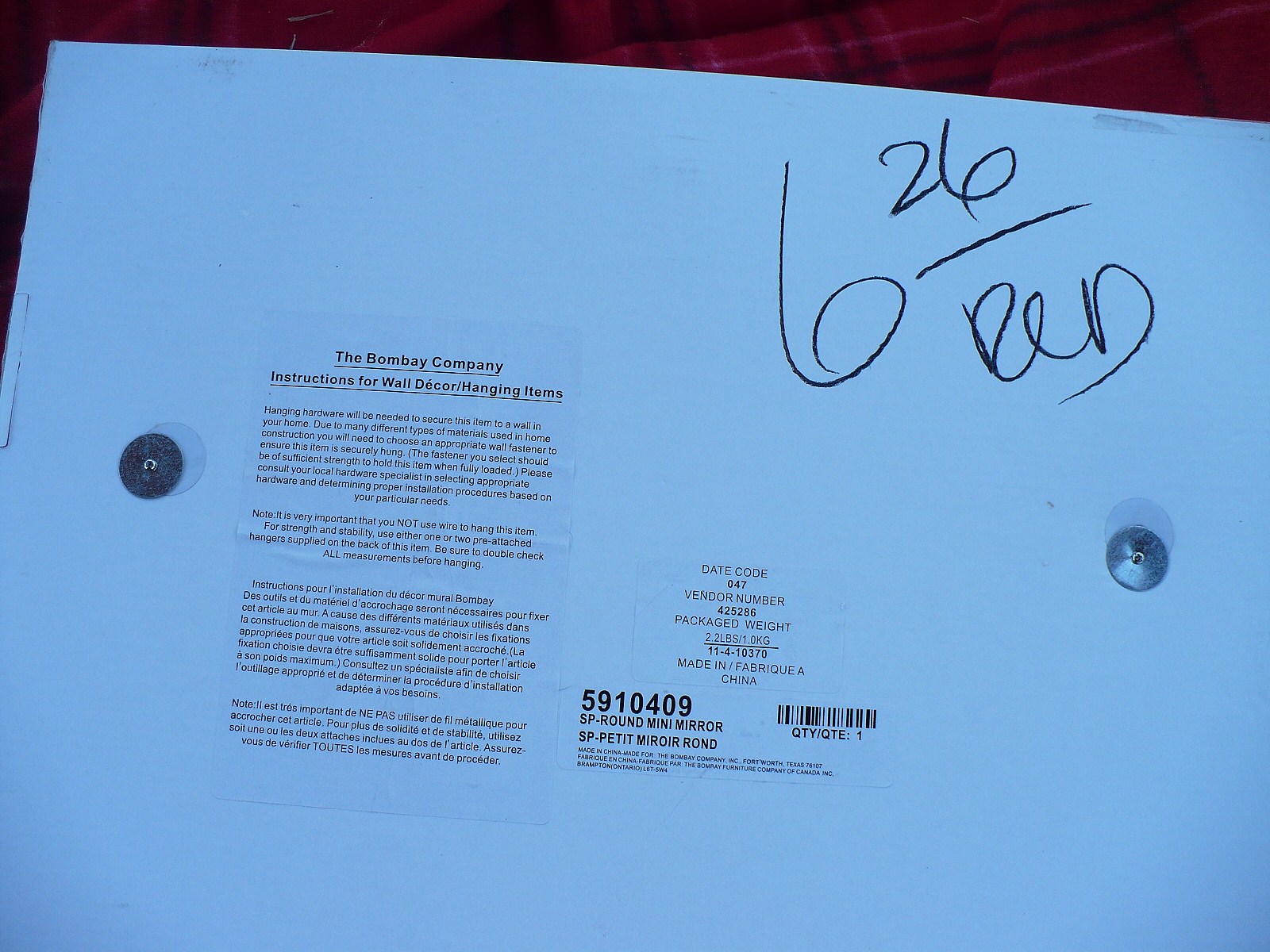 Most of you know that I’m collecting all sorts of mirrors to do the tall wall in my foyer. I found this pretty one at Goodwill. I just need to paint it black. So when I turned it over it said Bombay Company!
