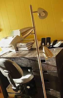 At the garage sales I found this modern chrome light for my husband’s office/the family room (which you know I’m redoing in a more modern look). $7 and it really looks brand new.