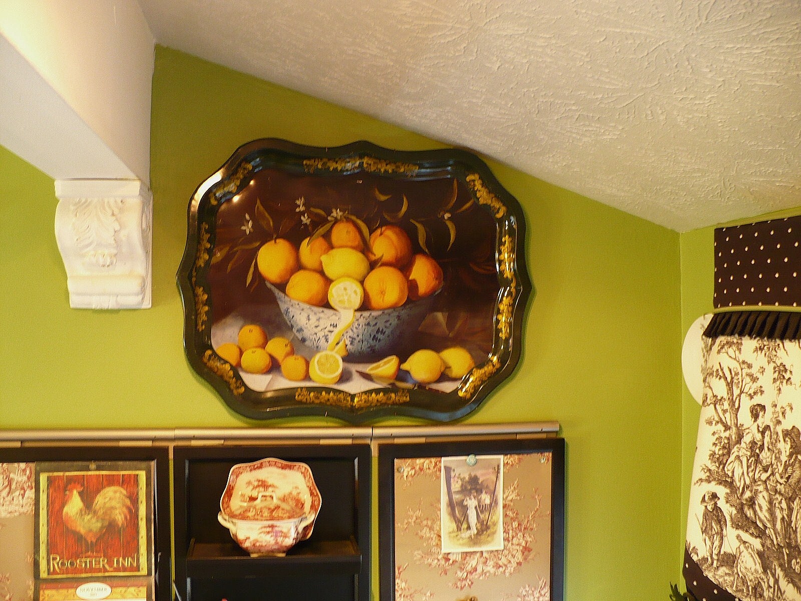 I found this tray at my local Goodwill for $3.13! My husband says that I don’t find these trays, they find me LOL! This one has a dark green border whereas all the others I’ve found have a black border. But I think it goes well with the other lemon tray in my kitchen don’t ya think?