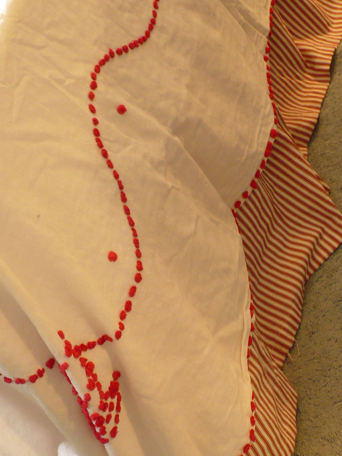 Hi everyone! A few months ago I found this red ticking bedskirt at Goodwill.