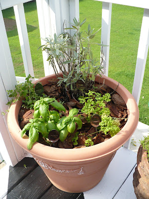 I grow herbs in my garden but I always have a few in planter right outside my kitchen for easy access!