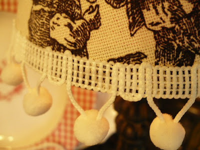 That shade turned out so cute. Love the ball fringe you added. And that plate with the little rooster is great too! Your kitchen corner looks so pretty. laurie