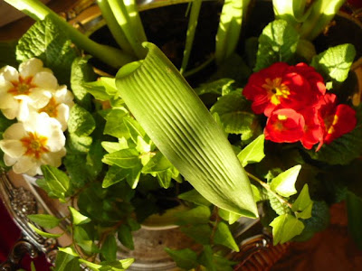 Oh Manuela, the dish garden is a delight! Primroses have always been one of my midwinter treats. They are such a bright spot of color in the dreary grey days. I love all your plants massed togther in your silver tray!
