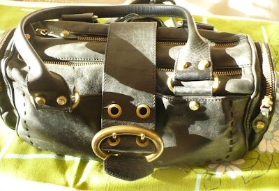Abigail tagged me to show my purse and what’s in it. She said that she “thinks I’m creative and can’t wait to see what kind of purse I have”. I don’t have one that I made myself out of scrapbook paper – although maybe I should paint some harlequins on it, oh I crack myself up sometimes! Actually my husband bought me this purse. He buys all my purses because I honestly could care less – I’m so not into clothes, shoes etc. Rule # 1) “Post a picture of whatever bag you are carrying as of late. No, you cannot go up to your closet and pull out that cute little purse you used back before you had kids…. Show what you carried today or the last time you left the house.”