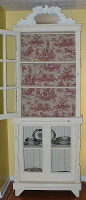 I love all of your toile. You did a wonderful job on that china hutch too. Beautiful